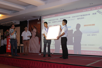 宏光照明總經(jīng)理黃亮竣、副總經(jīng)理黃權(quán)國分別發(fā)表重要講話,黃亮竣先生首先向各經(jīng)銷商及合作伙伴表示熱烈的歡迎和誠摯的謝意。他說,在過去的半年中,面對照明行業(yè)市場疲軟、大環(huán)境低迷的競爭形勢,宏光加大了各項(xiàng)投入力度,針對市場變化及時有效的進(jìn)行策略調(diào)整,在大家的共同努力和支持下,宏光照明逆勢而上,取得了一系列成果:上半年,公司五大事業(yè)部實(shí)現(xiàn)了健康、快速的發(fā)展:家居事業(yè)部實(shí)現(xiàn)穩(wěn)步增長; Dinah帝拿網(wǎng)點(diǎn)建設(shè)也與日俱增,各方意向客戶紛至沓來,通過渠道建設(shè)、媒體宣傳等多方面發(fā)展,Dinah帝拿品牌得到終端客戶的一致認(rèn)可;另外,外貿(mào)事業(yè)部、宏光光電事業(yè)部以及電子商務(wù)事業(yè)部在今年都取得了一系列可喜的成就。就上半年整體銷量同比往年而言,總體實(shí)現(xiàn)了較高的增長。成績的取得,離不開大家的共同支持和努力!黃總強(qiáng)調(diào)指出:在產(chǎn)品同質(zhì)化及競爭殘酷的現(xiàn)實(shí)下,未來,我們必須而且一定是在堅持品牌化運(yùn)作的前提下才能得到長久的發(fā)展,希望廣大經(jīng)銷商朋友們緊跟公司發(fā)展步伐,努力實(shí)現(xiàn)目標(biāo)一致、步調(diào)一致、上下一致。相信,經(jīng)過大家的共同努力,我們定能實(shí)現(xiàn)廠商共贏的局面!
