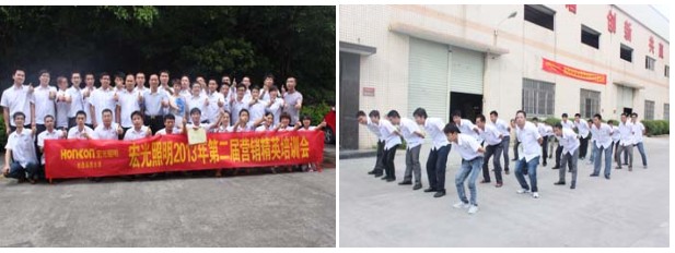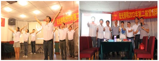 2013年7.6-7.10日,宏光照明2013年第二屆營銷精英會議隆重召開,宏光照明總經(jīng)理黃亮竣、營銷副總董小芳、營銷總監(jiān)于喜慶、研發(fā)總監(jiān)姜宏、OEM經(jīng)理張柏林以及營銷中心全體40多人參與了本次會議。