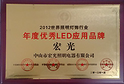 一如既往,中山市宏光照明電器有限公司又一次榮登榜單。此次頒獎晚會榮獲的獎項分別是:宏光照明榮獲2012世界照明燈飾行業(yè)年度優(yōu)秀LED應(yīng)用品牌;DINAH帝拿榮獲2012世界照明燈飾行業(yè)年度優(yōu)秀工程燈具制造商,此2項榮譽(yù)的獲得,一方面是對宏光照明在LED行業(yè)所作出的貢獻(xiàn)的肯定,另一方面是對公司日后發(fā)展的一個鞭策和鼓舞。DINAH帝拿品牌銅燈的全新出爐,迎合了當(dāng)下消費(fèi)者對品位、尊榮、藝術(shù)生活的訴求,傾心打造專屬于社會高層人士的榮譽(yù)與殊榮。宏光照明總經(jīng)理黃亮竣先生說:下一步,我們將推出以多品牌、多定位為主的發(fā)展戰(zhàn)略,力爭最大限度的為廣大消費(fèi)者提供優(yōu)質(zhì)的產(chǎn)品和服務(wù)!