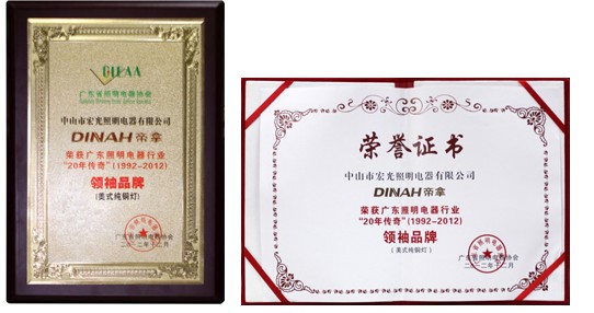 熱烈祝賀中山市宏光照明電器有限公司旗下品牌——DINAH帝拿榮獲“美式純銅燈領(lǐng)袖品牌”!