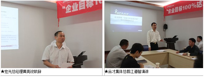合才江總裁也發(fā)表了誠摯的講話。他指出,合才是一家涉足企業(yè)咨詢培訓(xùn)、行業(yè)資源整合、產(chǎn)業(yè)投資于一體的大型教育投資機(jī)構(gòu),能夠?yàn)榭蛻羝髽I(yè)謀求更大福利的同時實(shí)現(xiàn)企業(yè)的多元化發(fā)展,是21世紀(jì)“企業(yè)目標(biāo)100%達(dá)成系統(tǒng)”解決方案的杰出提供商;他說,5月17日-6月30日,合才將派出專門的顧問老師及咨詢師,深入宏光總部和宏光的區(qū)域市場進(jìn)行有計劃、有目的的調(diào)研,使宏光照明在研發(fā)、生產(chǎn)、財務(wù)、營銷、客服、內(nèi)部管理等企業(yè)整體運(yùn)營系統(tǒng)上得到有效的融合、運(yùn)行效率大大提高,為宏光照明各部門目標(biāo)100%達(dá)成及企業(yè)目標(biāo)100%達(dá)成提供基礎(chǔ)條件。