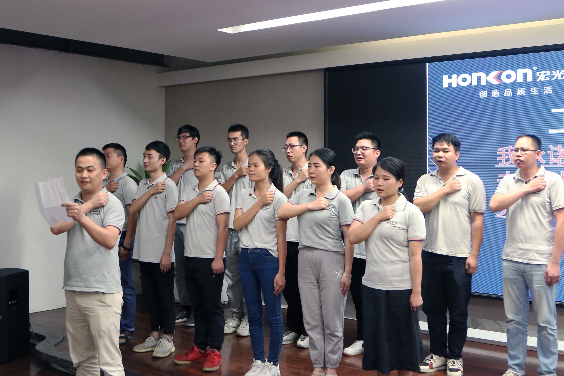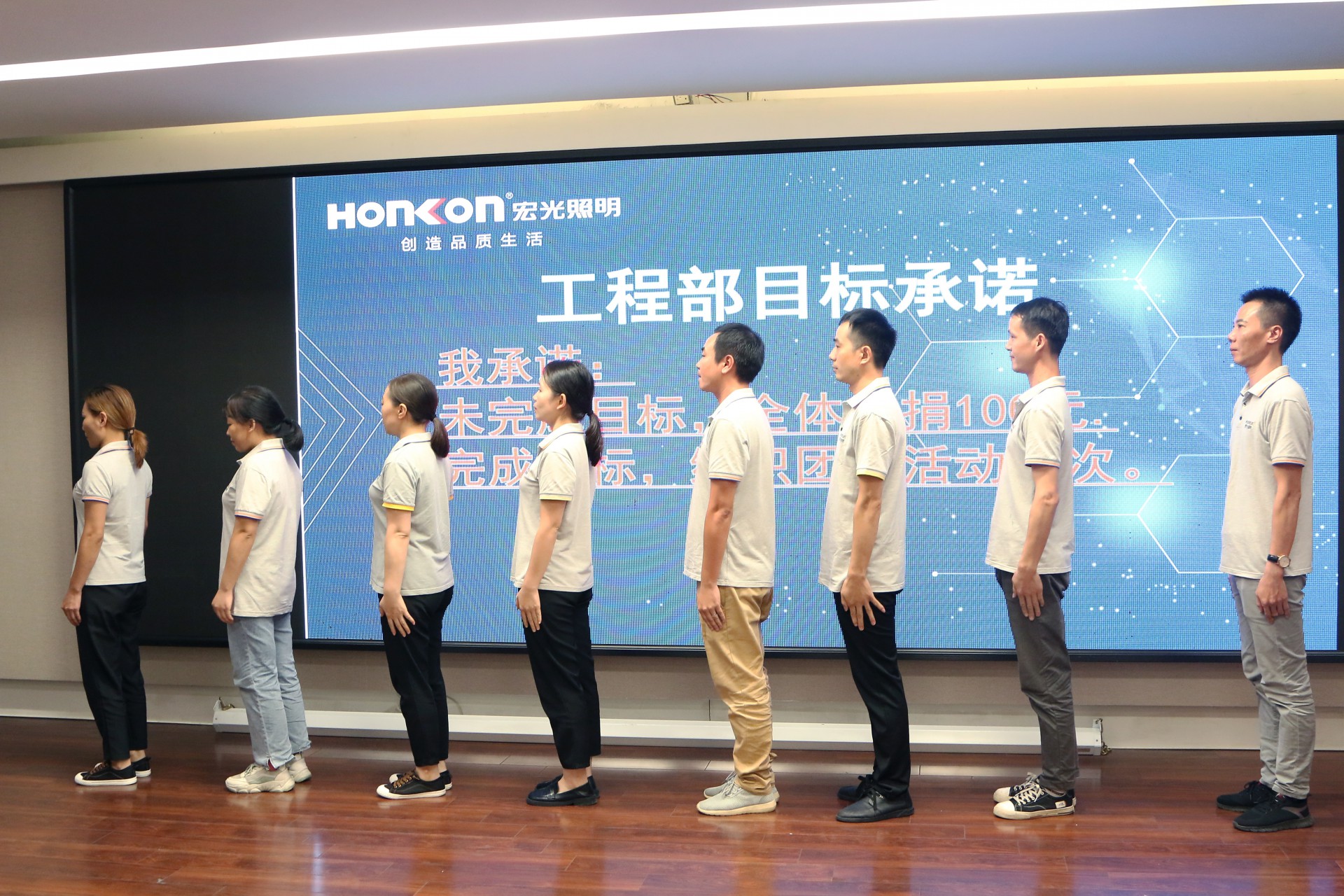宏光員工圍繞著“目標(biāo)明確,全力以赴,堅(jiān)守承諾”開(kāi)啟了目標(biāo)承諾PK展示,凝聚團(tuán)隊(duì)力量,表明達(dá)成目標(biāo)的決心以及目標(biāo)承諾的責(zé)任,通過(guò)一場(chǎng)陽(yáng)光積極的團(tuán)隊(duì)展示,將歸屬、責(zé)任、擔(dān)當(dāng)?shù)木駛鬟f給大家!
