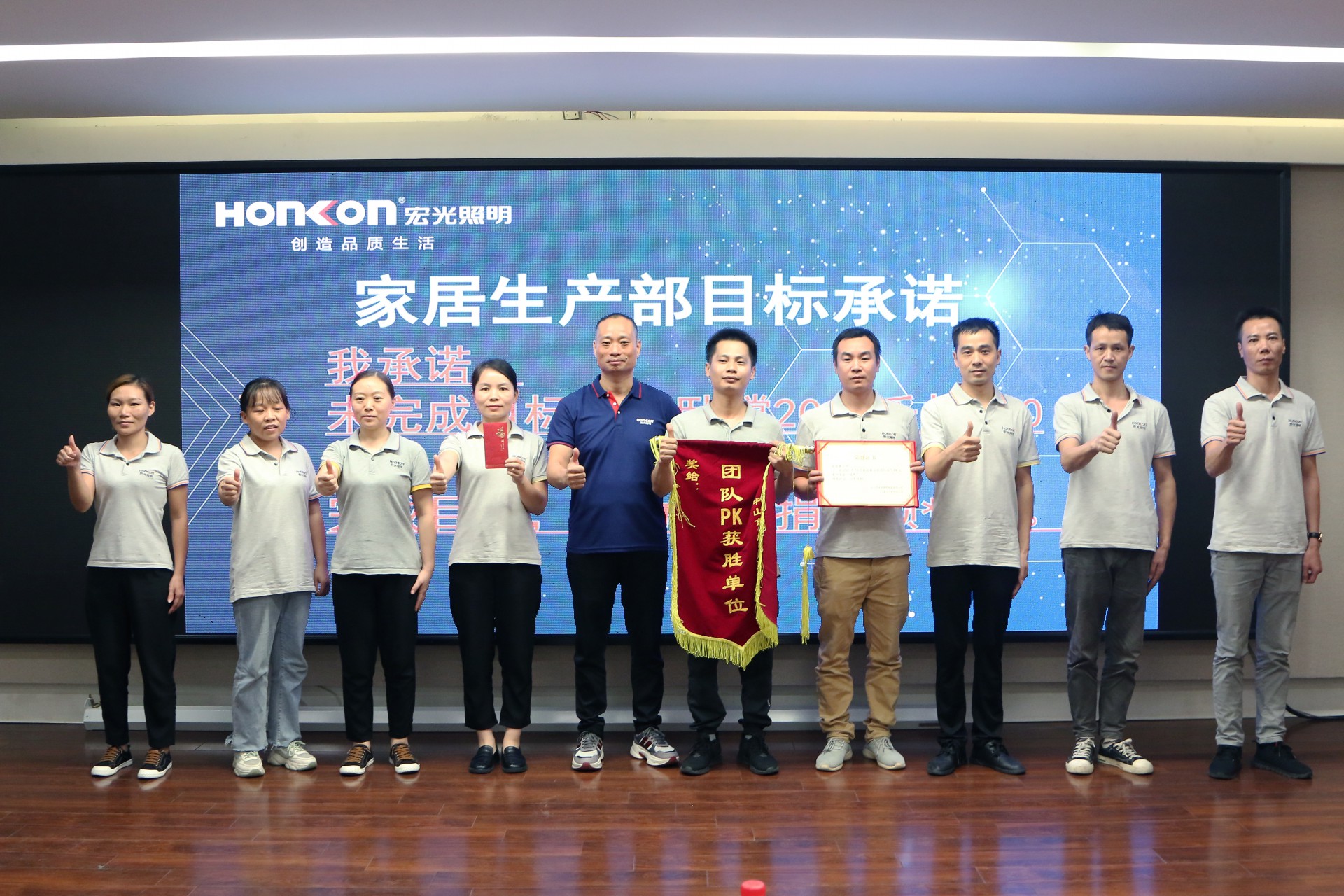 宏光集團(tuán)董事長(zhǎng)——黃亮竣先生就九月目標(biāo)執(zhí)行作出總結(jié)并對(duì)十月目標(biāo)進(jìn)行展望。通過(guò)生產(chǎn)各小組的齊心協(xié)力,這次出貨目標(biāo)、客訴率、生產(chǎn)細(xì)節(jié)、產(chǎn)品品質(zhì)均完成目標(biāo),唯一遺憾的是新品出貨,僅差一個(gè)系列完成目標(biāo)。雖有遺憾,但優(yōu)于同期數(shù)據(jù),非常值得表?yè)P(yáng)與鼓勵(lì)。大家向著目標(biāo)全力以赴,奮進(jìn)向前的面貌與精神,如此讓人感動(dòng)與激昂。我相信大家只要保持著這種狀態(tài)去努力奮進(jìn),達(dá)成目標(biāo)是必然的結(jié)果,讓我們攜手向現(xiàn)代燈第一品牌持續(xù)邁進(jìn);