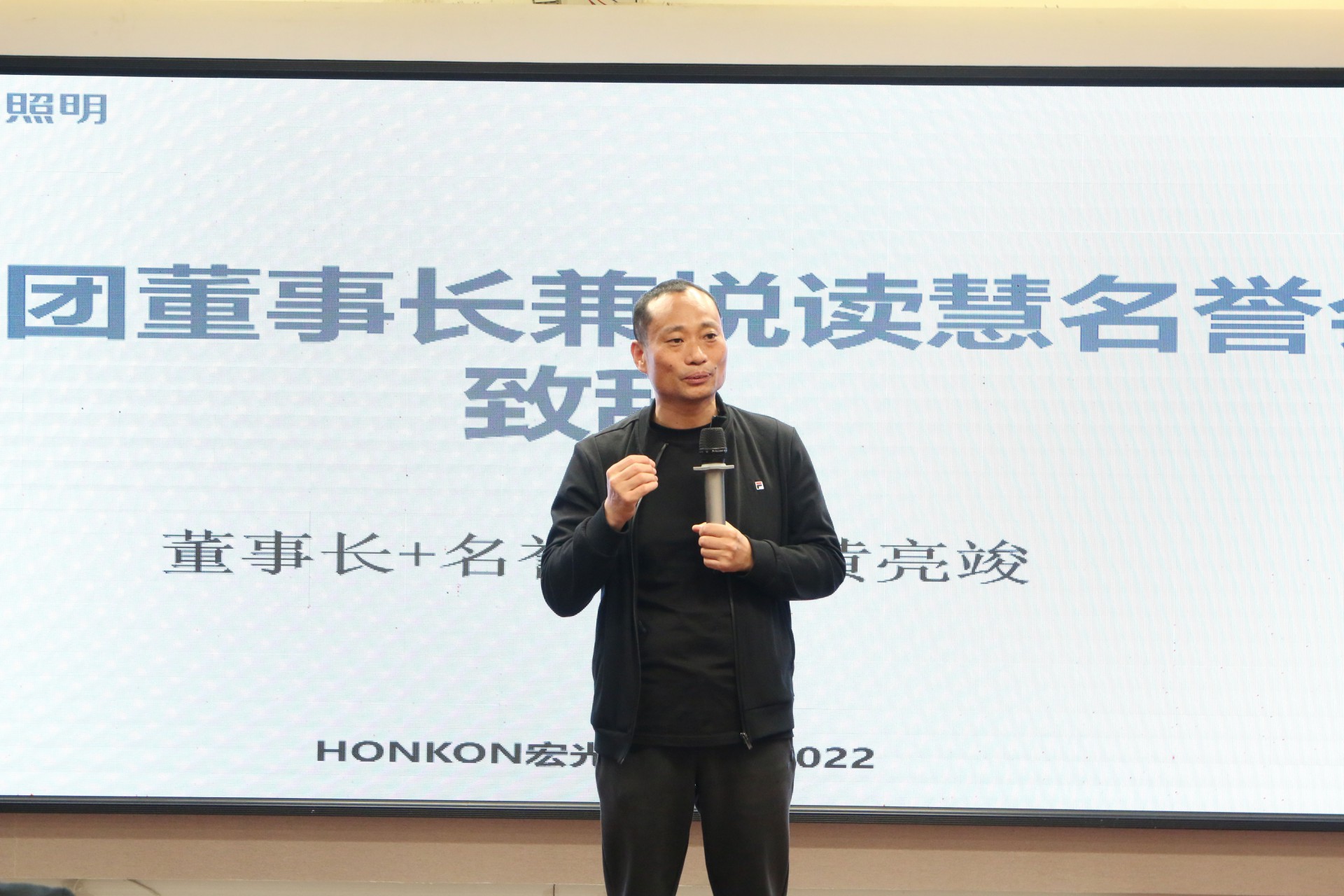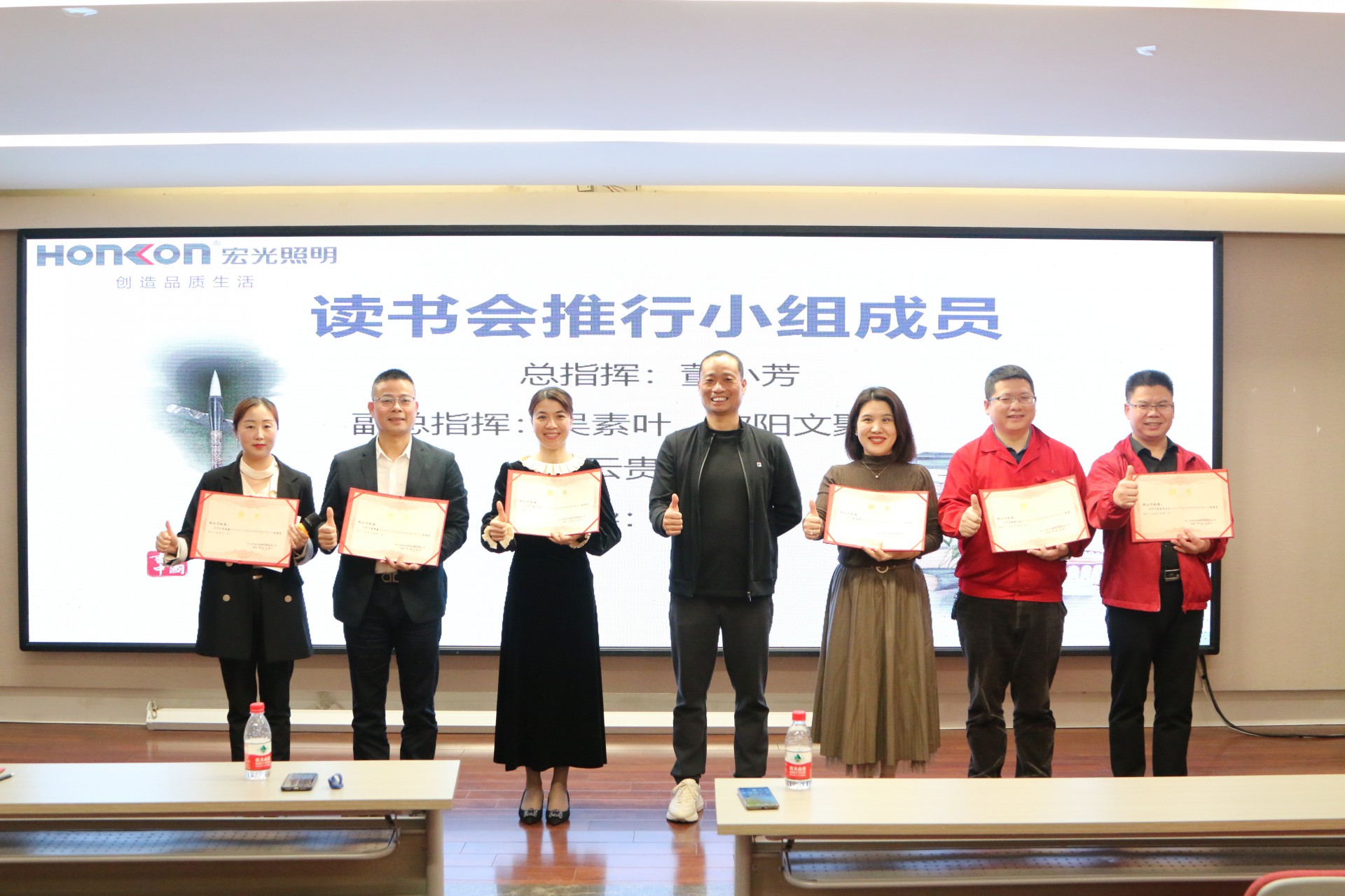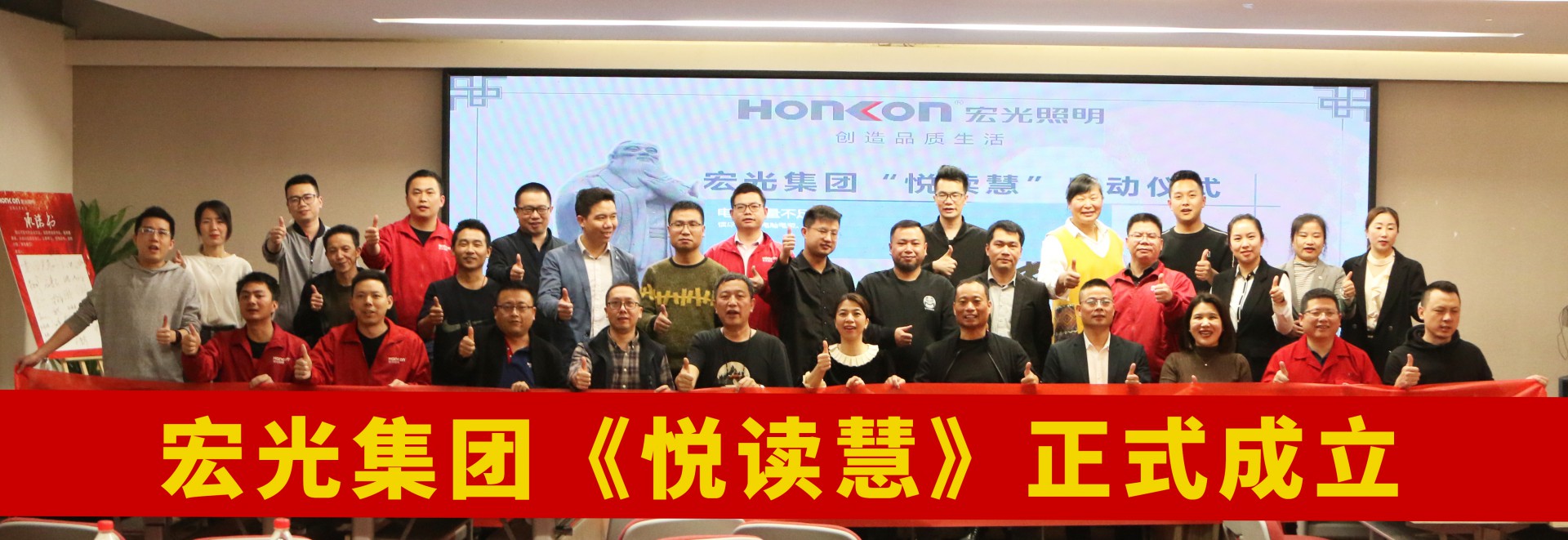 宏光集團是一家集研發(fā)、生產(chǎn)、銷售為一體的中大型燈飾照明企業(yè),現(xiàn)有自建現(xiàn)代化廠房100000平方米,公司旗下?lián)碛鞋F(xiàn)代燈領(lǐng)先品牌-“HONKON宏光照明”、高端商照-“TAVIC泰沃”、 全銅藝術(shù)燈-“DINAH帝拿”三大品牌,,現(xiàn)有員工超500多人,90%以上是年輕人。隨著宏光的不斷發(fā)展壯大,公司充分認識到,“企業(yè)的競爭,就是人才的競爭”。為提高員工文化素養(yǎng)和崗位技能,倡導樂讀書、善學習、提素質(zhì)的良好風尚,增強企業(yè)核心競爭力。因此,以“讀取智慧,書悅?cè)松睘橹黝}的宏光集團“悅讀慧”于2022年3月29日在總部正式成立。