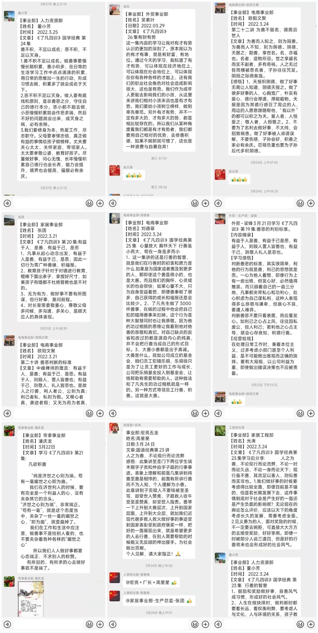 從3月上旬,公司已經(jīng)試運行“悅讀慧”一段時間,卓見成效,受益匪淺。成員讀的第一本書就是經(jīng)典國學書籍《了凡四訓》,成員通過“立命之學、改過之法、積善之方、謙德之效”的維度,提升自我修養(yǎng)與管理水平,大家積極在群里分享了自己收獲,提出了在自我、家庭、工作等的意見,互相學習,互相成長,一起傳遞知識的力量。同時,大家也分享了對于“讀取智慧,書悅?cè)松钡母形蚺c見解,也對今后的讀書活動形式交流了想法。分享與交流不僅拓寬了讀書的視野,也激發(fā)了大家對知識的向往,現(xiàn)場書香十足,氣氛活躍。讀書會后,大家表示在今后的生活與工作中,將繼續(xù)保持讀書熱情,鼓勵身邊的同事們一起多讀書,讀好書。