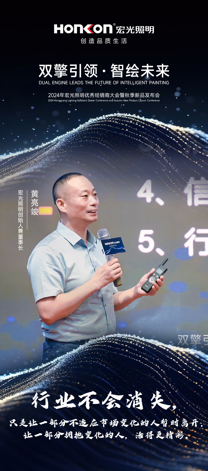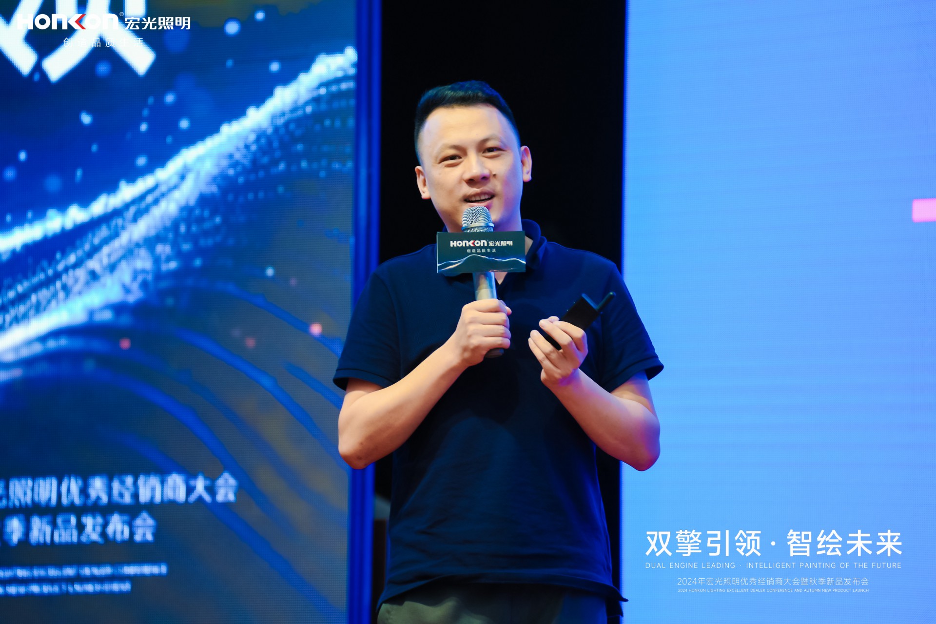 宏光照明創(chuàng)始人兼董事長(zhǎng)-黃亮竣▲黃董首先強(qiáng)調(diào),宏光照明將持續(xù)深化“智能現(xiàn)代燈+智能燈光照明”雙引擎盈利模式,這一模式不僅具備行業(yè)領(lǐng)先的競(jìng)爭(zhēng)優(yōu)勢(shì),更能實(shí)現(xiàn)低投入高回報(bào),有效抵御市場(chǎng)風(fēng)險(xiǎn),為經(jīng)銷商帶來(lái)穩(wěn)健的盈利。為了進(jìn)一步提升終端盈利能力,黃董表示,宏光照明將深耕智能燈光板塊,通過(guò)升級(jí)智能展廳、導(dǎo)入全屋智能、對(duì)商照產(chǎn)品持續(xù)加大研發(fā)力度等一系列舉措,為經(jīng)銷商創(chuàng)造更多的盈利機(jī)會(huì),擴(kuò)大品牌市場(chǎng)份額。同時(shí),為了滿足經(jīng)銷商的差異化需求,宏光照明還將為終端門店提供非標(biāo)定制服務(wù),通過(guò)制定非標(biāo)產(chǎn)品定制服務(wù)流程標(biāo)準(zhǔn),實(shí)現(xiàn)非標(biāo)產(chǎn)品的快速對(duì)接、生產(chǎn)和出貨,為經(jīng)銷商提供更全面的產(chǎn)品差異化優(yōu)勢(shì)。除此之外,黃董還強(qiáng)調(diào),宏光照明將持續(xù)賦能終端,通過(guò)營(yíng)銷團(tuán)隊(duì)、宏光商學(xué)院、主動(dòng)營(yíng)銷、抖音、酷家樂(lè)設(shè)計(jì)工具、家裝節(jié)等多種形式,從引流拓客、留客、高價(jià)值成交三個(gè)維度出發(fā),為經(jīng)銷商打造職業(yè)化的團(tuán)隊(duì),全面助力經(jīng)銷商提升營(yíng)銷能力,實(shí)現(xiàn)持續(xù)輕松盈利。在危與機(jī)并存的市場(chǎng)中,宏光照明將與經(jīng)銷商攜手并進(jìn),共克時(shí)艱,憑借專業(yè)的服務(wù)和更優(yōu)秀的品牌實(shí)力,把握復(fù)雜多變的市場(chǎng)機(jī)遇,共創(chuàng)品牌新篇章。
