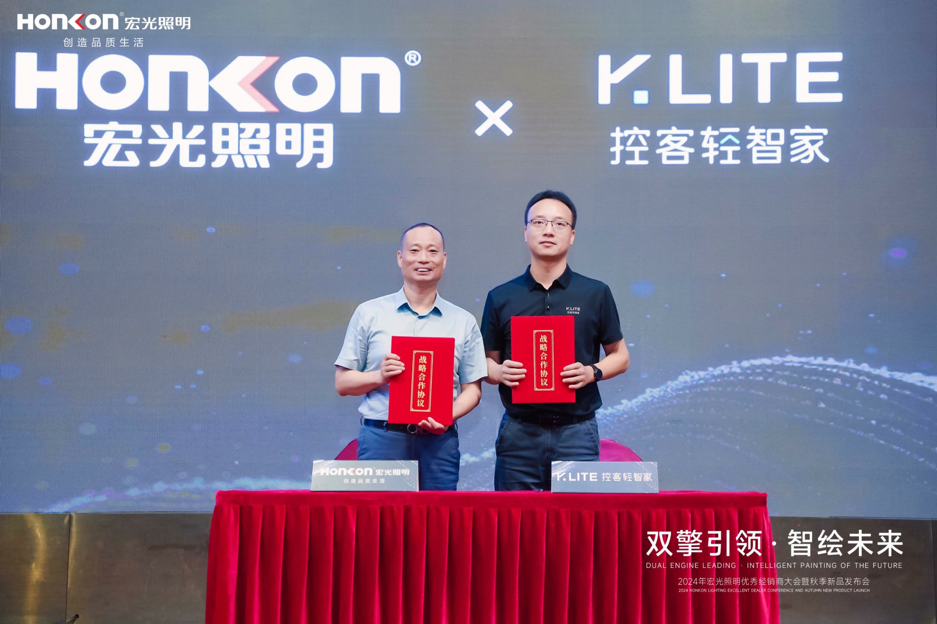 在本次大會(huì)上,宏光照明繼續(xù)深耕智能燈光板塊,與控客輕智家簽署了全面戰(zhàn)略合作協(xié)議,攜手控客輕智家深入打造智能照明燈光解決方案。雙方將持續(xù)通過(guò)渠道合作、共同開(kāi)發(fā)、團(tuán)隊(duì)賦能等多種合作方式,充分發(fā)揮各自在技術(shù)研發(fā)、市場(chǎng)營(yíng)銷、渠道拓展等方面的優(yōu)勢(shì),共同推動(dòng)智能照明行業(yè)的發(fā)展。同時(shí),宏光照明與控客輕智家將以最專業(yè)的技術(shù)力量、卓越的產(chǎn)品實(shí)力、全方位的服務(wù)能力,助力經(jīng)銷商在激烈的市場(chǎng)競(jìng)爭(zhēng)中脫穎而出。