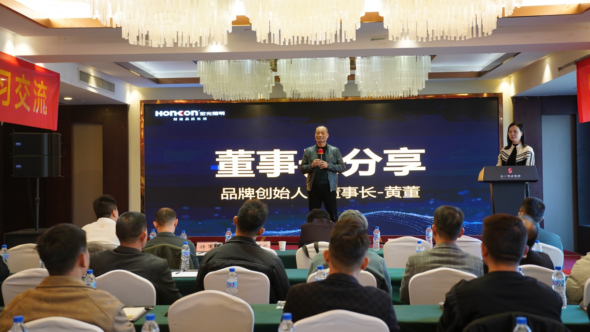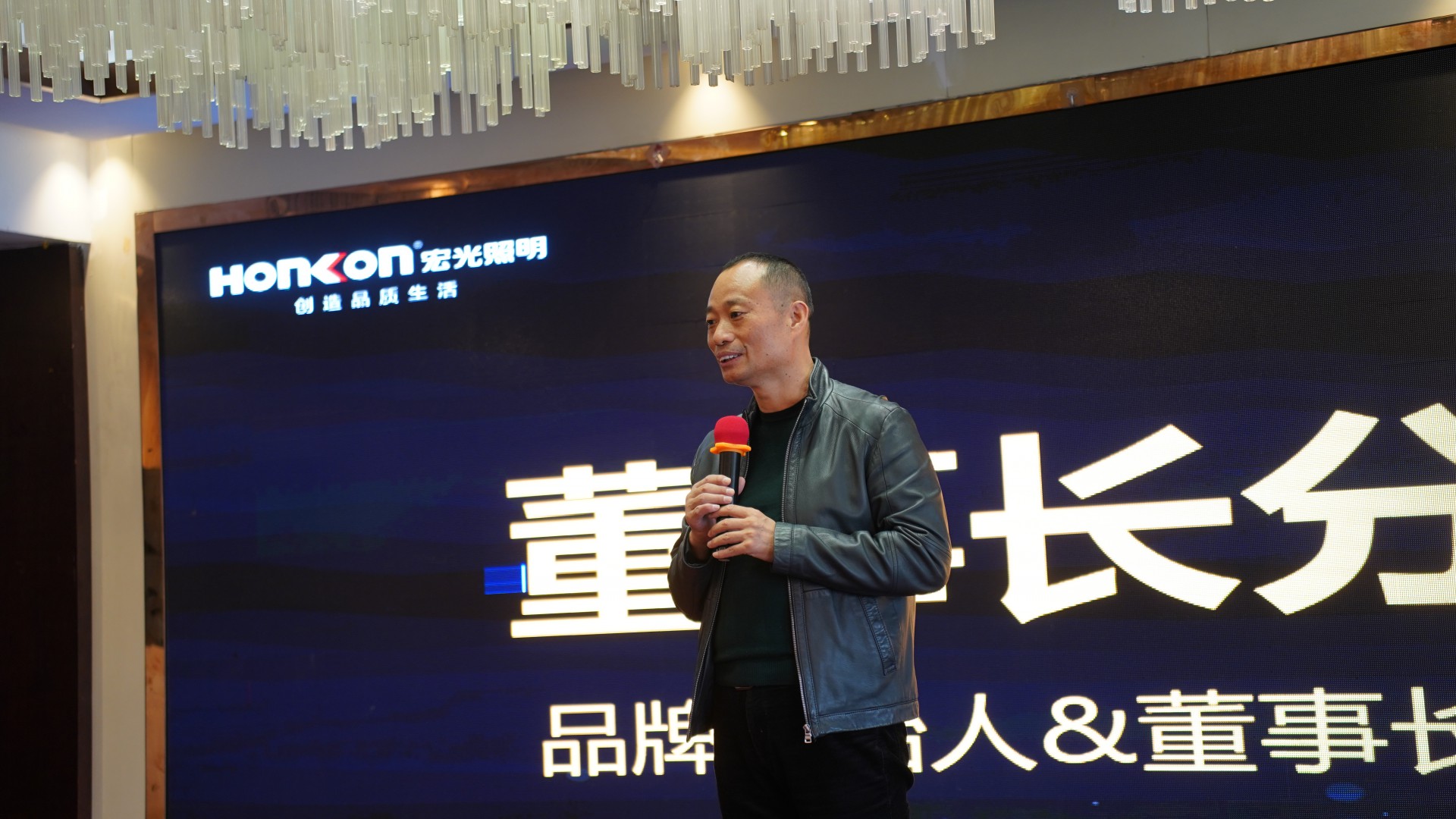 黃董在交流會(huì)上分享了自己對(duì)燈飾行業(yè)的現(xiàn)狀與機(jī)遇的深入剖析。隨著行業(yè)洗牌的加劇,品牌逐漸走向集中化,產(chǎn)品風(fēng)格和更新?lián)Q代的速度不斷加快,同時(shí)終端獲客方式發(fā)生了顯著變化,線上線下結(jié)合的終端形態(tài)成為行業(yè)新常態(tài)。面對(duì)這一系列挑戰(zhàn),經(jīng)銷商唯有捉住趨勢(shì),做好本質(zhì),方能立足市場(chǎng)。而宏光照明始終與經(jīng)銷商們站在一起,共同應(yīng)對(duì)市場(chǎng)的考驗(yàn)。為助力經(jīng)銷商應(yīng)對(duì)市場(chǎng)挑戰(zhàn),宏光照明將持續(xù)深化“智能現(xiàn)代燈+智能燈光照明”的雙引擎盈利模式。通過(guò)大店模式的落地實(shí)施,以行業(yè)領(lǐng)先的優(yōu)勢(shì)實(shí)現(xiàn)低投入、高回報(bào),為經(jīng)銷商構(gòu)建穩(wěn)固且可持續(xù)的盈利體系。黃董特別強(qiáng)調(diào)了打造最美終端的必要性。他指出:終端形象好,自帶流量,也為經(jīng)銷商提供更大的溢價(jià)空間與品牌競(jìng)爭(zhēng)力。宏光照明的大店模式作為雙引擎戰(zhàn)略的載體,有效提升店面的坪效,實(shí)現(xiàn)一份投入、兩份產(chǎn)出的良好效益,為門店增長(zhǎng)提供了堅(jiān)實(shí)的支撐。良好的終端形象才能在市場(chǎng)中脫穎而出,不僅抓住客戶的眼球和心智,更能強(qiáng)化品牌在客戶心中的地位,從而在有限的客流中創(chuàng)造更大的價(jià)值。