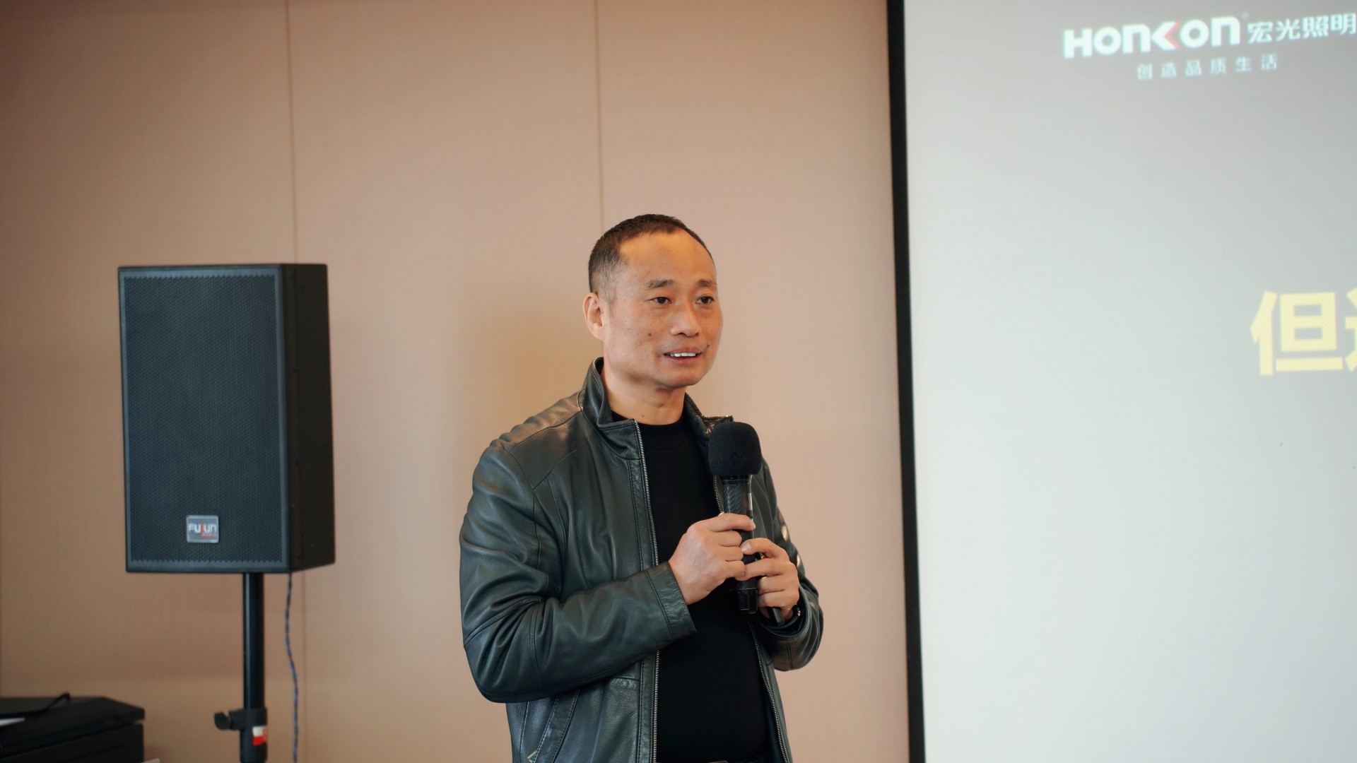 同時(shí),宏光照明還將通過(guò)特訓(xùn)營(yíng)、酷家樂(lè)設(shè)計(jì)平臺(tái)、抖音本地生活服務(wù)等多元化渠道,為經(jīng)銷商提供全方位的營(yíng)銷支持,助力其提升門店運(yùn)營(yíng)能力,打造專業(yè)團(tuán)隊(duì)。他建議經(jīng)銷商積極探索異業(yè)合作、社區(qū)營(yíng)銷、家博會(huì)及抖音營(yíng)銷等多種拓客方式,以鞏固經(jīng)營(yíng)基礎(chǔ),提升區(qū)域品牌影響力,推動(dòng)業(yè)績(jī)持續(xù)增長(zhǎng)。最后,黃董鼓勵(lì)所有經(jīng)銷商保持信心,勇于面對(duì)行業(yè)變革,共同度過(guò)低谷期,攜手共創(chuàng)更加輝煌的未來(lái)。