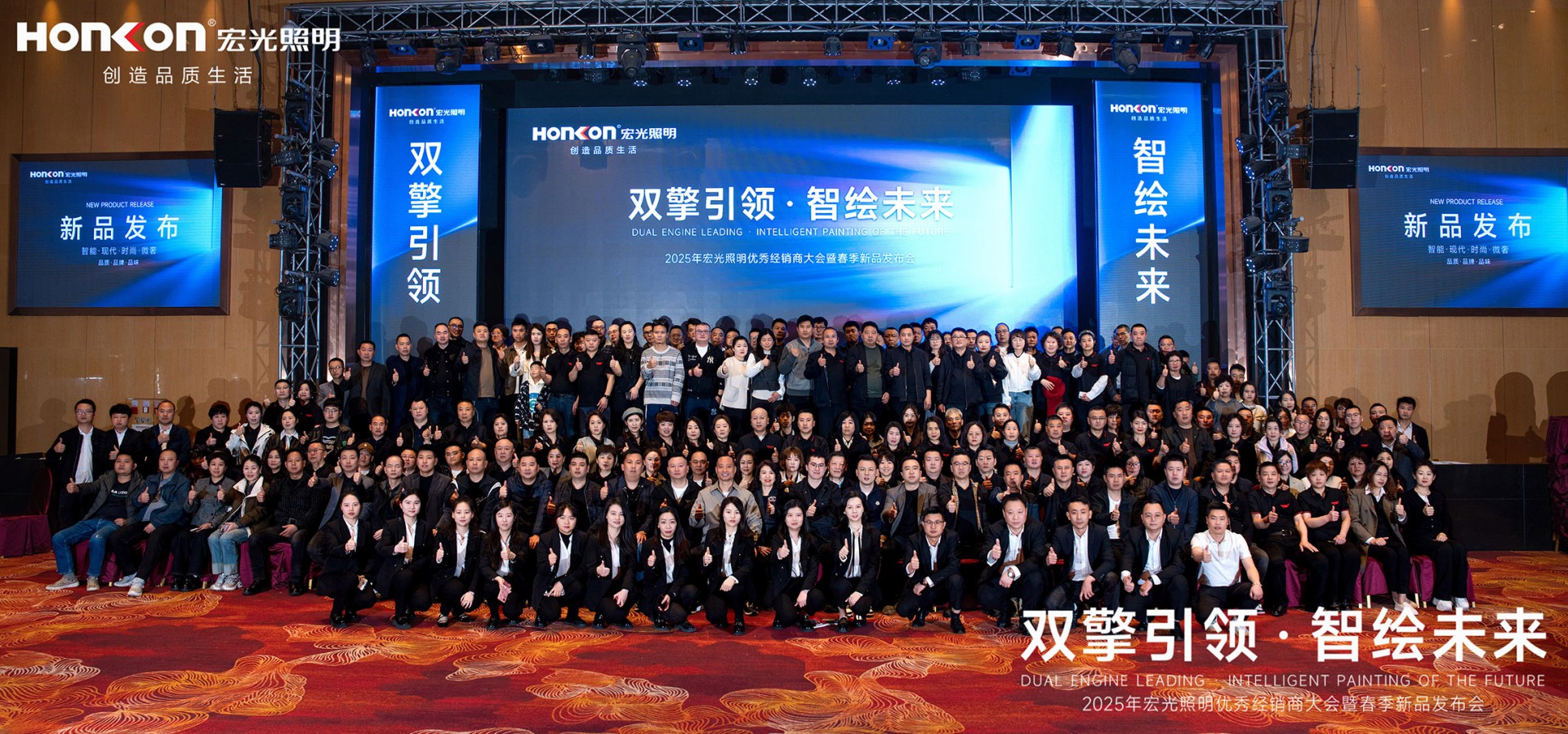 市場(chǎng)風(fēng)云變幻之際,燈飾品牌如何破局而出,成為行業(yè)亟待解答的關(guān)鍵。面對(duì)2025年市場(chǎng)環(huán)境的不確定性,宏光照明于3月7日在燈都古鎮(zhèn)隆重召開以「雙擎引領(lǐng)·智繪未來」為主題的全國(guó)優(yōu)秀經(jīng)銷商會(huì)議暨春季新品發(fā)布會(huì)。董事長(zhǎng)黃亮竣攜高層團(tuán)隊(duì)與全國(guó)經(jīng)銷商代表齊聚一堂,共謀戰(zhàn)略藍(lán)圖,吹響沖刺2025年的號(hào)角。